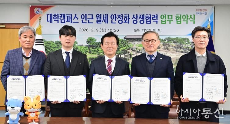 [아시아통신] 진주시는 9일 시청 기업인의 방에서 ‘대학 캠퍼스 인근 월세 안정화를 위한 상생협력 업무협약’을 체결했다.