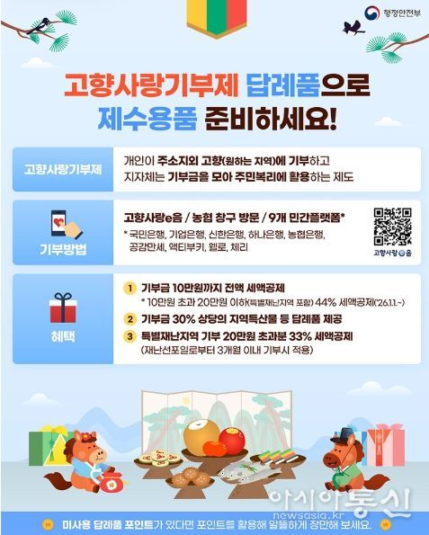 [아시아통신] 고향사랑기부제 답례품으로 제수용품 준비하세요!
