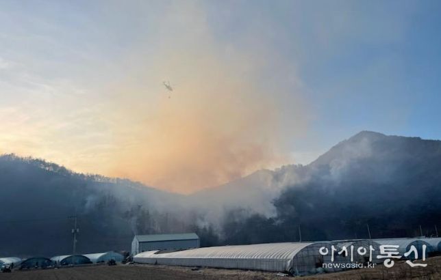 17시 현재 진화율은 60%다. 도는 공중과 지상의 진화 역량을 총동원해 인명과 재산 피해 없이 산불을 조기에 진화하는 데 최선을 다할 방침이다.
