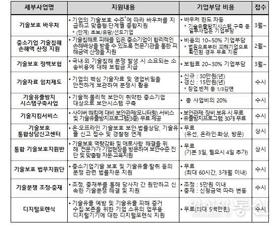 사업별 자세한 내용은 기술보호 통합 포털 기술보호울타리에서 확인할 수 있다.