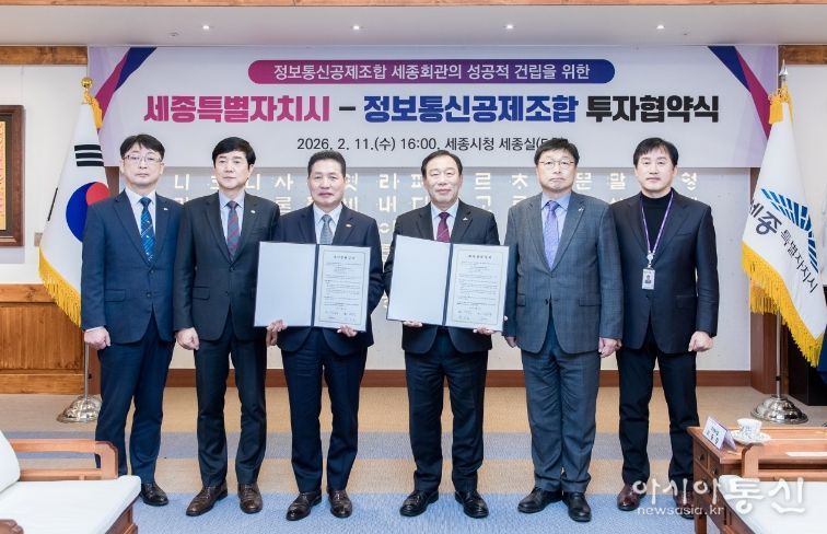 [아시아통신] 세종특별자치시와 정보통신공제조합이 11일 시청 세종실에서 정보통신공제조합 세종회관 건립을 위한 470억 원 규모의 투자협약을 체결했다.