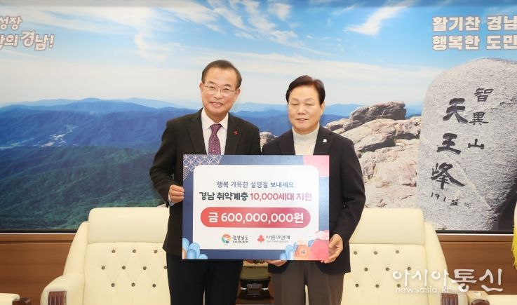 [아시아통신] 경상남도는 경남사회복지공동모금회(회장 강기철)가 설 명절을 앞두고 도내 어려운 이웃 지원을 위한 위문금 6억 원을 전달했다고 밝혔다.