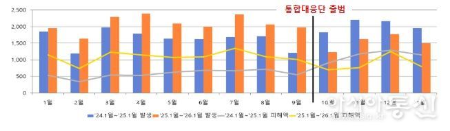 그 결과, ’25년 9월까지 전년 동기간 대비 증가세를 보이던 보이스피싱은 ’25년 10월 이후 ’26년 1월까지 4개월 연속 발생 건수와 피해액 모두 감소했다.