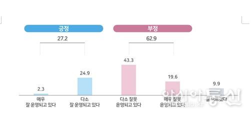 또한 현재 형사사법 서비스에 대한 국민의 평가는 부정의견이 62.9%로 긍정의견 27.2%보다 크게 앞섰다.