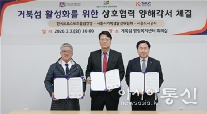 한국프로스포츠홀덤연맹(이사장 김용대)과 시흥도시공사(대표 유병욱), 거북섬 발전위원회(위원장 김선태)는 지난 3월3일 거북섬 행정복지센터에서 거북섬 활성화를 위한 MOU체결을 진행했다.