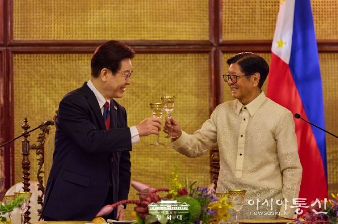 [아시아통신] 필리핀을 국빈 방문 중인 이재명 대통령 부부는 3일 저녁, 페르디난도 로무알데즈 마르코스 주니어 대통령이 필리핀 말라카냥궁에서 주최한 만찬에 참석했다.