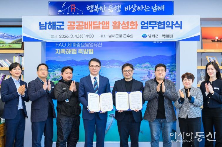 [아시아통신] 남해군은 4일 공공배달앱 운영사인 먹깨비와 ‘공공배달앱 활성화를 위한 업무협약’을 체결했다.