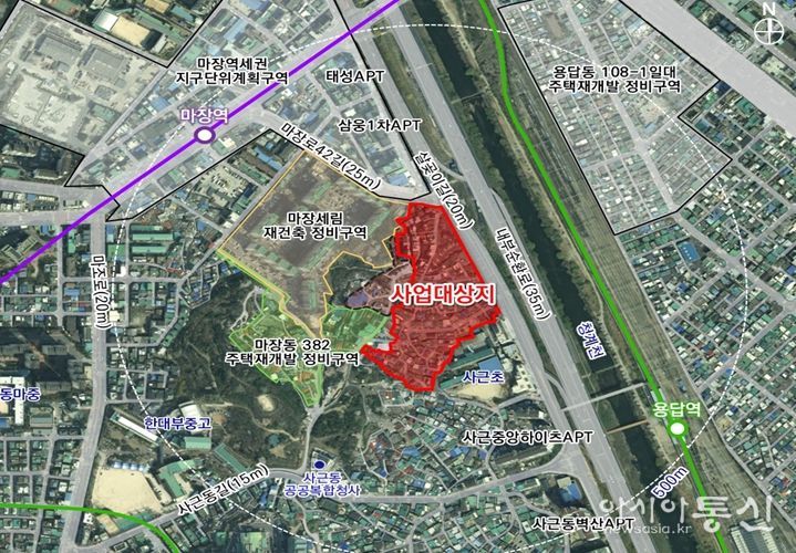 살곶이길 및 사근초등학교 경계부 옹벽을 정비하고 보행로와 녹지를 조성하여 안전하고 쾌적한 보행환경을 마련하는 한편, 인접한 마장동 일대 재개발사업 등 주변 개발사업과 연계해 도로를 확폭하고 지역 주민이 함께 이용할 수 있는 생활가로를 조성하는 등 통합적인 기반시설 정비를 추진한다.