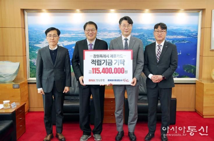 [아시아통신] 창원특례시는 3월 5일 시청 접견실에서 BNK경남은행 관계자들이 참석한 가운데 제휴카드 적립기금 전달식을 개최했다.