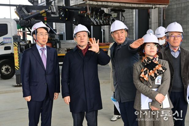 [아시아통신] 진주시는 조규일 진주시장과 김정환 경남테크노파크 원장이 지난 5일 이반성면 가산일반산업단지에 위치한 ‘미래항공기체(AAV) 실증센터’ 공사 현장을 방문해 공정 추진 현황과 안전관리 실태를 점검하고, 센터의 성공적 구축과 향후 협력 방안을 논의했다고 밝혔다.