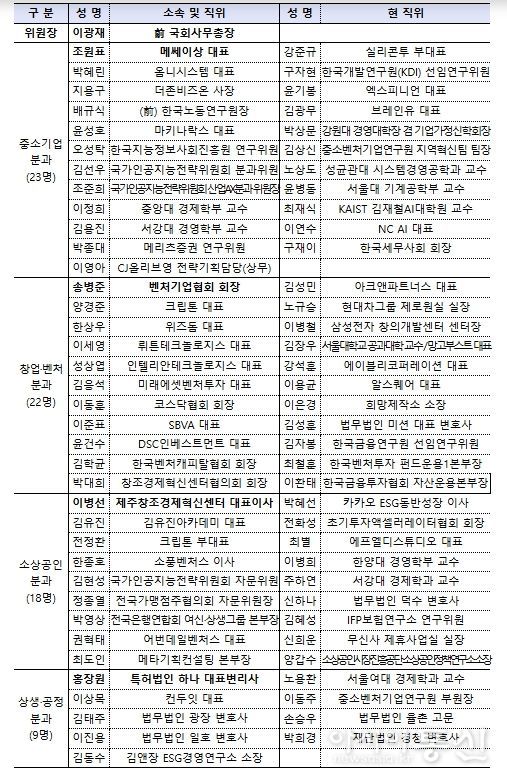 협의회는 기업인, 민간 전문가, 학계, VC, 협·단체 등 72명으로 구성되며 1년간 활동한다. 한성숙 중기부 장관과 이광재 전 국회사무총장이 공동위원장을 맡았다.