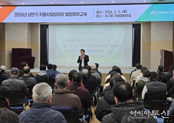 [아시아통신] 인천 서구는 지난 5일 자활사업 참여자 250여 명을 대상으로 ‘2026년 상반기 법정의무교육’을 실시했다고 밝혔다.