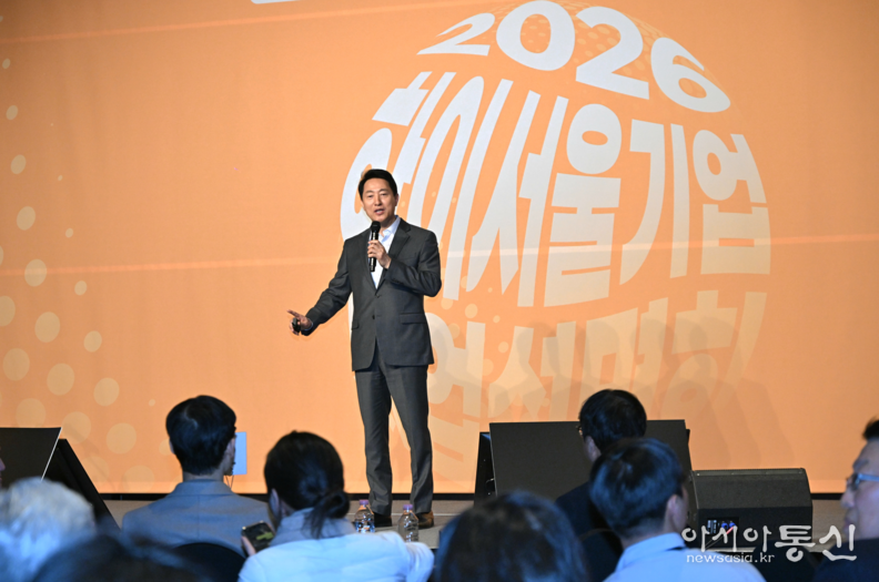 오세훈 서울시장은 12일(목) 16시 30분, 더 플라자 호텔 서울 그랜드볼룸에서 열린 ‘2026 하이서울기업 사업설명회’에 참석해 ‘서울 시민의 자부심을 디자인 하다’를 주제로 서울 시정을 소개했다.