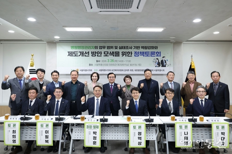 서울특별시의회 보건복지위원회 강석주 의원(국민의힘, 강서2)은 지난 3월 26일(목) 오후 2시, 서울시의회 제2대회의실에서 「병원행정관리자의 업무 범위 및 실태조사 기반 역량강화와 제도 개선 방안 모색을 위한 정책토론회」를 개최하고, 병원행정관리자의 역할 재정립과 제도 개선을 위한 정책 논의를 본격화했다.