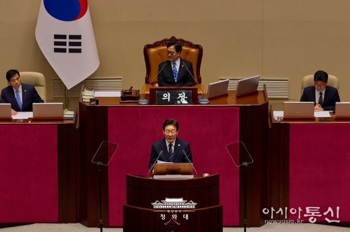 이 대통령은 이날 국회에서 '2026년도 추가경정예산안' 시정연설을 통해 "위기일수록 사회적 약자를 더 두텁게 보호해야 한다는 원칙과, 경제 회생의 골든타임을 놓치지 않겠다는 각오 아래, 총 26조 2000억 원 규모의 추가경정예산안을 마련했다"며 이 같이 말했다.