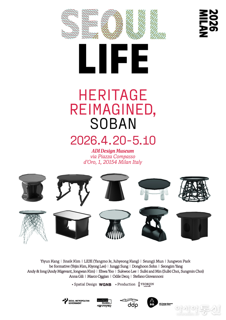 서울디자인재단(대표이사 차강희, 이하 재단)은 2026년 4월 20일부터 5월 10일까지 이탈리아 ADI 디자인뮤지엄에서 국제 전시 <SEOUL LIFE 2026 MILAN: Heritage Reimagined, Soban>을 개최한다.