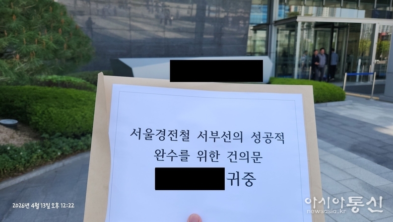 문성호 시의원은 지난 10일부터 13일까지 4일간, 대한민국 시공능력평가 상위 10개 건설사 본사를 차례로 방문했다. 화려한 행사나 보도진을 동반하지 않은 채, 오직 시민들의 염원이 담긴 ‘서울경전철 서부선의 성공적 완수를 위한 건의문’ 뭉치만을 들고 홀로 건설사의 문을 두드렸다.