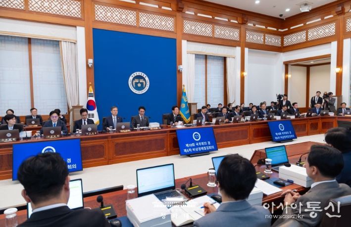 아울러 "화물차 노동자와 농민 등 고유가 충격이 큰 국민 계층에 대한 제도적 사각지대가 없는지 잘 살펴야 한다"며 "인공지능 대전환과 재생 원료 중심의 순환 경제 실현 등 우리 경제의 구조 혁신 또한 속도를 내 달라"고 당부했다.