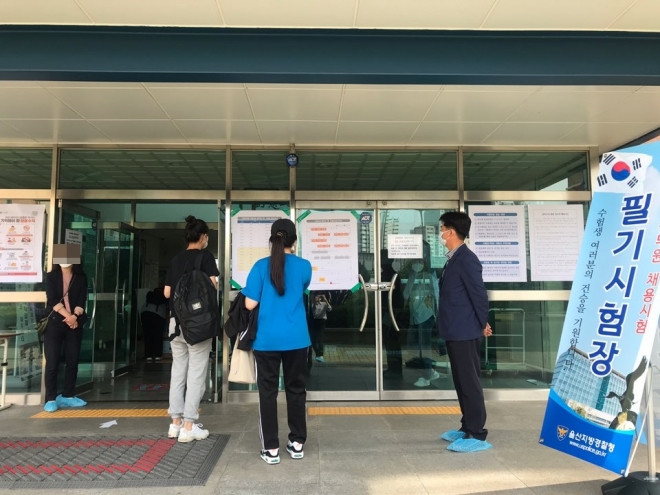 5월30일, 2020년 제1차 경찰공무원(순경) 채용시험이 전국 동시 실시된다. 이번 시험은 코로나19 확산에 따라 4월 4일 실시하기로 했던 시험이 한차례 연기된 것이다. 울산지방경찰청(청장 김진표)은 울산공업고등학교(남구 신정동)와 울산상업고등학교(울주 범서읍)에서 시험을 실시하며, 일반공채와 전의경 경력채용을 포함 총 40명을 채용할 예정이다. 응시인원은 총 1,043명으로 평균 26.1:1의 경쟁률을 보였으며, 이는 전국 평균 경쟁률 18.3:1에 비해 높은 수치이다. ※ 남 27명 모집 692명 응시(25.6:1), 여 9명 모집 283명 응시(31.4:1) 전의경 경력채용 4명 모집 68명 응시(17:1) 특히 이번 경찰공채 시험은 코로나19 감염 및 전파 방지를 위해 “생활 속 거리두기 경찰 업무 지침”에 따라 시험장 방역을 대폭 강화했으며, 기존의 시험관리팀 외에 별도의 감염예방관리 전담팀을 꾸려 응시생들의 건강권 및 학교 방역체계 관리에 만전을 기하였다. 모든 응시생을 대상으로 발열검사를 통해 시험장 출입절차를 강화하고, 시험전·후 방역소독은 물론 교실별 수용인원을 예년의 절반 수준인 15명~20명으로 줄여 응시자 간 1.5m 이상의 거리를 유지할 수 있도록 하였으며, 응시생 및 시험 관계자 전원 마스크 착용을 의무화했다. 또한 사전신고시스템을 운영하여 국내·외 발생지역 방문이력자 및 제반 증상이 있는 응시생을 사전에 파악하고, 당일 시험 현장에서 실시하는 발열검사에서 고열자로 분류되는 응시생들을 위해 별도의 예비교실을 마련하여 운영한다. 아울러 자가격리 중인 응시생이 있을 것을 대비하여 특별시험장도 운영한다. 보건 당국의 외출 허가를 받은 응시생들의 경우에는 격리된 별도의 특별시험장에서 시험을 치를 수 있도록 조치하여, 응시생들의 공무담임권을 최대한 보장하도록 한 것이다. 단, 관련 법률에 따라 코로나19 확진자는 시험에 응시할 수 없다. 또한 응시생 뿐만 아니라 시험 관계자 전원은 향후 14일간 발열 또는 호흡기 증상 모니터링이 권고된다. 울산지방경찰청은 코로나19 상황으로 인해 변화된 채용시험 준비에 철저히 대비하여 감염예방관리에 최선을 다할 계획이라고 밝혔다.