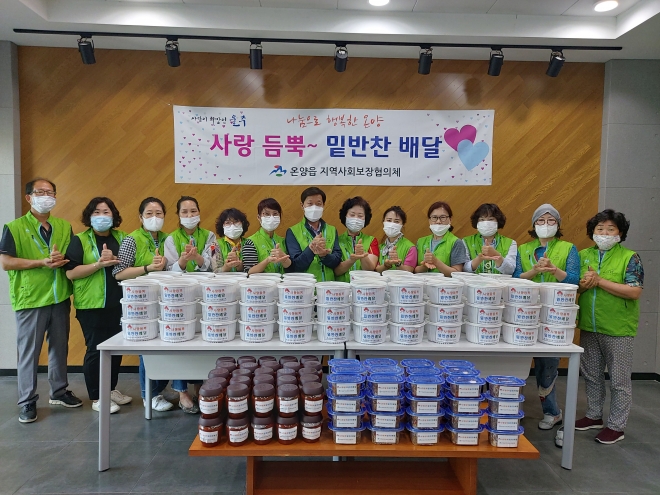 온양읍 지역사회보장협의체(한동훈 공동위원장·안연순 민간위원장)는 4일 온양읍 행정복지센터에서 사랑듬뿍 밑반찬 배달 사업을 진행했다. 이번에 진행된 밑반찬은 협의체 회원들이 직접 열무물김치와 오리양념불고기, 멸치볶음, 쇠고기볶음고추장 등 입맛이 돋우는 반찬들을 정성껏 준비하고, 어르신들 가정에 전달하며 안부를 확인했다. 분기별로 실시되는 사랑듬뿍 밑반찬 사업은 결식의 우려가 높은 저소득 독거어르신과 장애인 가구에 밑반찬을 전달하며, 더불어 복지사각지대에 있는 소외된 이웃에게 필요한 복지서비스를 연계하고 있다. 반찬을 전달받은 한 어르신은“혼자 지내다보니 밥을 챙겨먹는 게 쉽지 않은데, 이렇게 여러 가지 반찬을 가져다주니 끼니 걱정을 덜었다”며 고마운 마음을 표했다. 안연순 온양읍지역사회보장협의체 위원장은“우리의 작은 관심과 정성으로 준비한 밑반찬을 받고 행복해하는 어르신들을 보니 보람을 느낀다”며“앞으로도 온양읍이 더욱더 따뜻한 복지공동체로 성장해 나갈 수 있도록 노력하겠다”고 말했다.