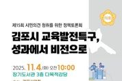 [아시아통신] 김포시의회는 김포시 교육발전특구의 추진 성과를 점검하고 향후 비전과 정책 방향을 모색하기 위해 오는 11월 4일 장기도서관 3층 다목적강당에서 정책토론회를 개최한다. 이번 토론회는 ‘김포시 교육발전특구, 성과에서 비전으로’라는 주제로, 지역 교육 관계자와 전문가, 시민이 함께 참여해 교육발전특구 추진 성과를 돌아보고, 미래 교육도시로의 발전 전략을 논의하기 위해 마련됐다. 주제 발제는 협성대학교 교육대학원 김성기 교수가 맡았으며, '김포시 교육발전특구 발전방향'에 대해 발표 후 토론이 진행된다. 토론 좌장은 김현주 의원(김포시의회), 패널로는 김지원 장학사(경기도김포교육지원청), 허철규 교장(마송중·고등학교), 오은화 팀장(김포시 교육문화국), 김민정 회장(김포시학부모회장협의회)이 참여한다. 김현주 의원은 “김포시가 3040 젊은 세대와 아동인구 비율이 높고 성장 잠재력이 높은 도시인 만큼, 교육이 도시 경쟁력의 핵심이 되어야 한다”며, “이번 토론회를 통해 김포형 교육발전특구가 실질적인 교육 혁신의 플랫폼으로 발전할 수 있도록 시민, 교육계, 행정이 함께 지혜를 모으는 계기가 되길 바란다”고 말