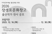 [아시아통신] 고래문화재단이 운영하는 장생포문화창고가 울산 시각예술 활성화를 위한 ‘2026 울산작가 전시 지원사업’ 공모를 오는 12월 16일부터 12월 30일까지 진행한다고 밝혔다. 이번 공모는 울산에서 활동하는 시각예술 분야의 개인 작가와 예술단체를 대상으로 창작 실험과 다양한 예술적 시도를 지원하는 것이 주요 목적이며 장생포문화창고는 2026년 갤러리B를 ‘울산작가 플랫폼’으로 운영해 지역 예술인들에게 안정적인 전시 기회를 제공할 계획이다. 올해 공모는 지난해 5팀에서 총 10팀으로 규모를 두 배 확대한 점이 특징이고 생활예술단체 3팀을 새롭게 포함해 지역 주민의 문화예술 참여 기반을 확장한다. 전문예술인 분야에서는 7팀을 선정해 이들 모두에게 전시공간 제공과 함께 다양한 실질적인 지원이 이루어진다. 선정된 팀은 2026년 2월부터 12월까지 장생포문화창고 갤러리B에서 전시를 진행하며 제공되는 혜택으로는 전시 공간 무료 대관, 전시 리플릿 제작, 언론 홍보 등 전시 운영에 필요한 지원이 포함된다. 지원 서류는 고래문화재단 및 장생포문화창고 누리집에서 내려받을 수 있으며 전시 포