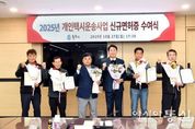 [아시아통신] 원주시는 2025년 개인택시운송사업 신규 면허 대상자 4명을 확정· 발표하고, 이달 27일 시청 7층 회의실에서 개인택시 운송사업 신규 면허증 수여식을 개최했다. 시는 지난 8월 18일 개인택시운송사업 신규 면허 모집 공고를 통해 13명을 접수하고, 10월 23일 확정 공고를 통해 4명을 신규 면허 대상자로 발표했다. 원강수 원주시장은 “20년이 넘는 오랜 기다림 끝에 신규 면허를 받게 된 모든 분께 존경과 축하의 말씀을 전한다”라며, “앞으로도 시민들에게 안전하고 친절