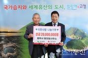 [아시아통신] 고성군은 법무사 황대열 사무소는 10월 28일 고성군청을 방문하여 어려운 이웃을 위해 성금 2,000만 원을 전달했다고 밝혔다. 이번 성금 기탁은 황대열 법무사가 2020년부터 매년 진행해 온 이웃사랑 나눔기부의 일환으로 2025년까지 기탁을 합쳐 총 8,000만 원의 성금을 지역사회에 전하고 있다. 황대열 법무사는 “고성군민의 따뜻한 사랑으로 도·군의원을 세 차례(기초의원 2회, 광역의원 1회) 역임할 수 있었던 것 같다”라며, “그동안 받은 사랑에 보답하고 싶어 매년 지역사회를 위한 나눔을 실천하고 있다. 도움이 필요한 이웃들에게 희망을 전할 수 있어 보람을 느낀다. 앞으로도 나눔 활동을 지속하겠다”라고 말했다. 이상근 고성군수는 “황대열 법무사님의 꾸준한 이웃사랑 나눔 실천에 진심으로 감사드린다”라며, “전달해 주신 성금은 관내 어려운 이웃들에게 소중하게 전달될 것이며, 군에서도 더 많은 이웃이 희망을 가질 수 있도록 최선을 다하겠다”라고 전했다. 한편, 이날 기탁된 성금은 사회복지공동모금회를 통해 고성군 내 저소득층 등 실질적으로 도움이 필요한 이웃들에게 전달될 예