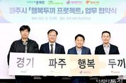 [아시아통신] 파주시는 ㈔딜로이트한마음나눔, 행복나래㈜, 행복도시락 사회적협동조합과 함께 결식 우려가 있는 외국인 노동자 자녀 지원을 위한 ‘행복두끼 프로젝트’업무협약을 체결했다고 밝혔다. 이날 협약식에는 최병갑 파주시 부시장을 비롯해 ㈔딜로이트한마음나눔 유병문 상임이사, 행복나래㈜ 조민영 본부장, 행복도시락 사회적협동조합 최준 사무국장 등 관계자들이 참석해, 아동복지 향상을 위한 상호 협력체계를 구축하기로 뜻을 모았다. 이번 협약을 통해 파주시는 결식 우려 아동을 추천하고, ㈔딜로이트한마음나눔, 행복나래㈜와 행복도시락 사회적협동조합은 해당 아동을 대상으로 도시락을 후원·제작·배송하는 역할을 맡게 된다. 이번 협약을 계기로 파주시 내 결식이 우려되는 외국인 노동자 자녀 40명이 지원을 받게 됐으며, ‘아프리카 10개국 이주민 노동자 공동체’는 해당 아동들이 정기적으로 도시락을 제공받게 된 것에 대해 깊은 감사의 마음을 전했다. 최병갑 파주시 부시장은 “파주시가 행복두끼 프로젝트 사업에 참여하게 되어 뜻깊다”라며 “앞으로도 지역사회 내 어려움을 겪는 아동들에게 희망을 전하는 따뜻한 사업이 지속적으로