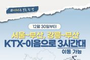 [아시아통신] 12월 30일부터 서울~부산, 강릉~부산 KTX-이음으로 3시간대 이동 가능 ■ 중앙선 운행 횟수 대폭 확대 청량리~부전 구간: 하루 총 6회→18회, 3배 증편 ■ 동해선 부전(부산)~강릉 운행 소요시간 3시간 54분으로, 기존 ITX-마음 운행(5시간 4분)대비 약 1시간 10분 단축