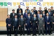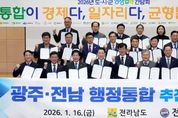 [아시아통신] 전라남도는 16일 전남도청 왕인실에서 ‘2026년 도-시군 상생협력 간담회’를 열어 지역 대도약을 위한 광주·전남 행정통합 추진에 도와 22개 시군이 공동 보조를 맞추기로 했다. 간담회는 김영록 전남도지사와 22개 시장·군수 등 관계자 100여 명이 참석한 가운데, 광주·전남 행정통합 추진계획과 전남도 재생에너지 추진전략을 중심으로 발표와 토론이 진행됐다. 이들은 광주·전남 행정통합을 통해 대한민국 제1호 통합 광역지방정부 출범을 목표로, 도와 시군이 상생 협력 의지를 재확인하고, 전남의 미래 성장 전략을 논의했다. 특히 특별법 제정안을 중심으로 행정통합 추진 경과와 향후 일정을 공유하고, 전남을 대한민국 첨단산업을 이끄는 ‘재생에너지의 심장’으로 육성하기 위한 시군의 협력 방향과 역할 분담에 공감대를 형성했다. 김영록 지사와 전남시장군수협의회는 광주·전남 행정통합 환영 성명서를 발표하고, 초광역 경제 중심지 도약을 위한 행정 통합에 적극 협력할 뜻을 밝혔다. 또한 22개 시군의 고유한 특성과 자율성이 존중되는 균형발전형 통합과 민주적 합의, 도민 공감대 형성에 책임 있게
