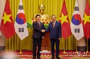 [아시아통신] 베트남을 국빈 방문한 이재명 대통령은 22일(현지시간) "양국은 2030년까지 교역 규모 1500억 불 목표 달성을 위해 교역·투자 협력을 더욱 호혜적으로 발전시켜 나가기로 했다"고 밝혔다. 이 대통령은 이날 또 럼 베트남 서기장 겸 국가주석과 하노이에 위치한 주석궁에서 정상회담 후 가진 공동언론발표를 통해 이 같이 말했다. 이 대통령은 발표를 통해 "베트남은 대한민국의 3위 교역·투자국이고, 한국은 베트남의 최대 투자국"라며 "약 1만 개의 한국 기업이 석유화학, 조선, 철강, 전자를 아우르는 전 분야에 진출해 높은 수준의 경제 연대를 이루고 있다"고 협력 관계를 강조했다. 또 "한국은 베트남의 '2045년 고소득 선진국 진입' 비전 실현을 위한 최적의 파트너로서, 물류, 교통, 에너지, 인프라와 같은 하드웨어 분야에서부터 과학기술, 지적재산, 창조산업 등 미래 산업 분야까지 전방위적인 협력을 추진하고 있다"고 덧붙였다. 이 대통령은 "이번 정상회담에서 '포괄적 전략 동반자' 협력을 더욱 공고히 하기로 했다"며 회담 주요 성과를 소개했다. 교역·투자 협력 관련
