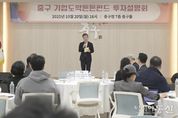 [아시아통신] 서울 중구가 지난 20일 중구청에서 '중구 기업도약든든펀드 투자설명회'를 열고, 성장 잠재력이 높은 중소·벤처기업을 대상으로 투자 유치와 성장 지원 계획을 밝혔다. 이번 설명회는 중구와 펀드운용사인 비에이파트너스가 공동으로 주관했으며, 지난 8월 중구가 출자한 벤처투자조합 결성 후 225억 규모의 펀드 본격 운용에 맞춰, 유망기업을 발굴하고 기업들의 투자유치 기회를 제공하기 위해 마련됐다. 이날 설명회에는 중구 소재 기업 및 중구로 이전을 희망하는 유망기업 등 약 35개사가 참여했다. 1부 투자설명회에서는 비에이파트너스와 유진투자증권에서 펀드 운용방향과 투자 기준, 2026 벤처투자 시장 및 IPO 전망, 투자 가능성을 높이는 IR 전략 등을 주제로 강연을 펼쳤다. 2부 투자상담에서는 사전 신청을 통해 선정된 기업들이 펀드운용사와 개별 상담을 진행하며 기업별 투자 가능성을 구체적으로 논의했다. 또한 현장에는 기업홍보존이 운영되어 참여기업들의 제품 전시와 시연을 통해 기술력과 아이디어를 직접 선보였다. 이를 통해 투자자와 기업 간 교류의 장이 자연스럽게 형성되며, 지역 내 신산업 생태계