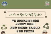 [아시아통신] 양평군은 관내 쓰레기 배출장소 및 취약지역의 무단투기 방지를 위해 주민 참여 기반의 청결유지 캠페인을 추진하고 있다고 밝혔다. 이번 캠페인은 기존의 폐기물 불법투기 단속 위주의 방식에서 벗어나 주민 참여를 통해 무단투기를 선제적으로 방지하고자 마련된 것으로, 주요 쓰레기 거점 배출장소와 분리수거장, 무단투기 취약지역 등에 주민 참여를 유도하는 안내판을 붙이는 방식으로 시행되고 있다. 기존 무단투기 방지 안내판은 폐기물관리법에 따른 과태료나 처벌 중심의 경고성 문구가 위주였으나, 이번 캠페인을 통해 설치되는 안내판에는 주민의 분리배출에 대한 감사의 메시지와 이를 통한 양평군의 발전 내용을 담고 있다. 한 주민은 “과태료 경고문만 보던 곳에 따뜻한 칭찬 문구가 붙어 있어 마음이 따뜻해졌다”며 “양평군에 대한 신뢰와 고마움을 느끼며 스스로 분리배출을 더 잘 실천해야겠다는 생각이 들었다”고 말했다. 전진선 양평군수는 “군민이 체감하는 청결한 양평을 만들기 위해서는 무단투기 방지가 중요하다”며 “군민 여러분의 적극적인 참여를 부탁드리고, 앞으로도 지속적인 홍보와 관리 강화를 통해 청결한 생활환