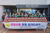 [아시아통신] 파주시 월롱면 새마을부녀회는 지난 28일, 지역 내 취약계층을 돕기 위한 ‘이웃사랑 된장 나눔 행사’를 실시했다고 밝혔다. 추워진 날씨에도 불구하고 20여 명의 회원들이 참여해 정성껏 담근 된장 150통을 마을별로 방문해 전달하며 따뜻한 온정을 나눴다. 우미랑 월롱면 새마을부녀회장은 “지난해에 이어 올해도 이웃사랑 된장 나눔을 꾸준히 이어갈 수 있어 기쁘다”라며 “작은 정성이지만 추운 겨울을 앞둔 이웃들에게 따뜻한 마음과 사랑이 전달됐으면 좋겠다”라고 말했다. 이어 “앞으로도 주민 곁에서 함께하며 살기 좋은 월롱을 위해 계속해서 봉사하는 새마을부녀회가 되겠다”라고 말했다. 김윤정 월롱면장은 “급격히 추워진 날씨에도 어려운 이웃을 위해 봉사해 주신 새마을부녀회에 감사드린다”라며 “회원들이 정성껏 담근 된장이 지역의 소외된 이웃들에게 따뜻한 겨울이 되기를 기원한다“라고 말했다. 한편, 월롱면 새마을부녀회는 정기적으로 독거노인과 취약계층을 위해 된장, 김장김치, 반찬 나눔 봉사를 이어오며 지역사회에 나눔 문화를 확산하고 있다.