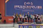 [아시아통신] 경상북도는 22일 영주시 풍기인삼문화팝업공원에서 민족통일협의회 경상북도 주관으로 ‘2025 민족통일 경상북도대회’를 개최했다. 행사에는 김진현 경북도 안전행정실장, 배진석 도의회 부의장, 유정근 영주시장권한대행, 도재영 민족통일 중앙협의회 의장, 박종호 민족통일경상북도협의회장, 김추길 민족통일 전남회장을 비롯한 시군지회 회원 700여 명과 풍기인삼축제현장을 찾은 많은 관광객과 어울려 뜻깊은 행사를 했다. 행사는 식전 공연을 시작으로, 한반도 평화를 위한 결의문을 회원들과 함께 낭독하고, 이어서 지역사회 및 통일 안보에 이바지한 우수 유공자들에게 도지사 표창을 비롯한 다양한 상패가 수여되며 행사 분위기를 한층 고조시켰다. 특히, 행사 마지막에는 참가자 전원이 함께 ‘우리의 소원은 통일’을 합창하며, 평화통일의 필요성과 중요성을 다시 한번 되새기는 뜻깊은 시간으로 마무리됐다. 박종호 민족통일 경상북도협의회장은 대회사를 통해 “확고한 국가관과 투철한 사명감을 바탕으로 민족의 염원인 조국의 평화통일을 실현할 수 있도록 도민들의 적극적인 참여와 성원”을 당부했다. 김진현 경북도 안