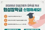 [아시아통신] 건설근로자공제회(이사장 직무대행 권혁태)와 협성문화재단(이사장 박석귀)은 건설근로자의 대학생 자녀 학업 지원을 위해 ‘2026년 신규 협성장학생’을 선발한다. 지원대상은 건설근로자공제회에 등록된 건설근로자로 총 적립일수가 600일 이상이고, 2025년도 근로내역은 최소 100일이다. 건설근로자의 자녀 가운데 국내 4년제 대학 신입생과 2026년 기준 2~3학년 재학생을 대상으로 장학생을 모집한다. 선발 인원은 20명 내외다. 제출서류, 심사기준은 협성문화재단 홈페이지 내 공지사항을 통해 확인할 수 있다. 접수기간은 오는 12월 15일부터 내년 1월 5일까지이며, 협성문화재단에 제출서류를 등기우편으로 제출해야 한다. 서류합격자는 2026년 1월 26일 발표되며, 면접은 2월 2일부터 6일까지 진행된다. 최종 합격자는 2월 9일 재단 홈페이지에 게시되고, 2월 12일 장학증서 수여식이 열릴 예정이다. 장학생에게는 등록금 전액과 함께 매 학기 50만원의 학습보조금이 지원된다. 또한 인문학 강의, 독서 프로그램, 해외 탐방 및 봉사 활동 등 다양한 장학 프로그램 참여 기회도 제공된다. 장학생은 매 학기