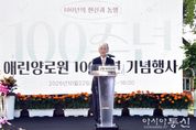 [아시아통신] 김제시는 용지면 소재 애린양로원(원장 한종욱)이 개원 100주년을 맞아 ‘100년의 헌신과 동행’이라는 주제로 22일 기념행사를 개최했다고 밝혔다. 이날 행사는 사회복지 관계자, 지역주민, 후원자 및 자원봉사자 등 약 300여 명이 참석한 가운데 애린양로원 야외공연장에서 진행됐다. 식전공연, 개회선언에 이어 사회복지법인 애린원 한규택 대표이사의 기념사를 시작으로 각계 인사의 축사가 이어졌다. 특히 애린양로원의 어르신 복지향상과 기관 발전에 기여한 단체 및 직원 등을 대상으로 전북특별자치도지사 표창, 김제시장 표창 등 총 8개의 수상이 이뤄져 기쁨의 영광을 누렸다. 한종욱 원장은 “오늘의 영광은 지난 100년간 함께해주신 모든분들의 헌신 덕분”이라며 “앞으로도 어르신들의 품격 있는 삶과 행복을 위해 한결같은 마음으로 노력하겠다”고 밝혔다. 정성주 김제시장은 “김제의 자랑스러운 애린양로원이 창립 100주년을 맞이하게 된 것을 진심으로 축하드린다.”며, “앞으로의 100년도 지역사회와 함께 숨 쉬며, 든든한 복지의 중심으로 우뚝 서기를 기대한다.”고 전했다.