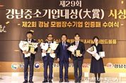 [아시아통신] 경상남도는 22일 오후 호텔 인터내셔널 창원에서 ‘제29회 경남중소기업대상 시상식’ 및 ‘제2회 경남 모범장수기업 인증패 수여식’을 개최했다. 이번 행사는 경남지방중소벤처기업청(청장 손한국), BNK경남은행(행장 김태한), 경남신문(회장 이종붕)과 공동으로 열려 지역경제 발전에 기여한 중소기업과 장기 재직자의 노고를 격려했다. 경남도는 이날 시상식에서 “국내외 어려운 경영환경 속에서도 경남이 3년 연속 무역수지 흑자를 기록하고, 역대 최고치의 고용률을 달성한 것은 경남 경제의 주체인 중소기업 덕분”이라며, “기업이 잘 돼야 도민의 행복지수가 높아지는 만큼, 현장의 애로를 청취하고 지원을 이어가겠다”고 밝혔다. ‘경남중소기업대상’은 기술․경영 혁신으로 신제품 개발, 고용․수출 확대, 노사 동반 성장 등 지역경제 발전에 기여한 중소기업과 장기 재직자의 노고를 격려하기 위해 1996년부터 매년 수여해오고 있다. 지난해까지 총 202개 기업과 131명의 장기 재직자가 수상했으며, 올해는 6개 부문 9개 기업과 우수 장기 재직자 10명이 수상의 영예를 안았다. 부문별로는 △(기술혁