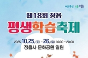 [아시아통신] <정읍시 평생학습 축제 홍보물> 전북 정읍시가 오는 25~26일 정읍사문화공원 일대에서 '제18회 정읍 평생학습축제'를 연다. 21일 시에 따르면 이번 축제는 다채로운 무대 공연과 온 가족이 함께 즐길 수 있는 풍성한 체험 프로그램으로 채워질 예정이다. 지난 2006년 평생학습도시로 선정된 이후 매년 열리고 있는 이 축제는 평생학습동아리, 유관기관·단체 등에서 활동하는 시민들이 주인공이 돼 배움의 결과를 공유하는 뜻깊은 자리다. 행사는 25일 오전 10시 개막식을 시작으로, 오카리나 녹두 등 15개 팀이 준비한 아름다운 연주와 무용 등 다채로운 무대 발표가 펼쳐진다. 이틀간 운영되는 홍보·체험관에서는 무지개동아리 등 27개 팀이 참여해 방문객들을 맞는다. 체험 부스에서는 -꽃바구니 만들기-유객주 제작 -방향제·키링 만들기 -가훈 쓰기 -천연화장품 만들기 -전통주·커피 시음 -먹거리·드론 체험 -파우치·팔찌 만들기 등 남녀노소 누구나 즐길 수 있는 프로그램이 가득하다. 특히 세계의상을 입어보는 문화 체험도 마련돼 색다른 즐거움을 선사할 예정이다.