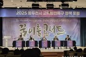[아시아통신] 동두천시는 지난 18일 동두천시 평생학습관에서 열린 ‘동두천시 교육발전특구 성과보고회 '꿈이룸 콘서트'’가 총 500여 명의 시민이 참석한 가운데 성황리에 마무리됐다고 밝혔다. 이번 행사는 동두천시가 2024년 2월 교육발전특구 시범지역으로 선정된 이후, 지역 대학과 학교, 교육지원청 등 유관기관과 함께 추진해 온 교육 혁신 성과를 시민들과 공유하고, 지역 교육의 지속적인 발전을 도모하기 위해 마련됐다. 행사에서는 ▲교육발전특구 정책포럼 ▲미미미누 특별강연 ▲홍비치라 그림작가 토크쇼 및 사인회 등 다양한 프로그램이 진행됐으며, 교육과 예술을 결합한 구성으로 청소년부터 성인까지 전 세대가 함께 참여할 수 있어 관람객들의 큰 호응을 얻었다. 또한 평생학습관 1층 로비에는 ▲캐리커처로 나만의 머그컵 만들기 ▲자율주행 로봇 시연 ▲학생 작품 전시회 등 체험형 이벤트 공간이 운영됐으며, 2년간 학생들이 수업을 통해 제작한 작품 전시와 그 과정을 담은 뮤직비디오는 학교와 학생, 학부모들로부터 큰 관심을 받았다. 특히 ‘제1회 교육발전특구 SW·AI 경진대회’ 시상식에서는 휴머노이드 로봇이 직접