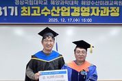 [아시아통신] 경상국립대학교 해양과학대학은 12월 17일 오후 해양과학대학 해양누리관에서 ‘2025년 제31기 최고수산업경영자과정 수료식’을 개최했다. 이날 수료식에서는 해양과학대학 이정석 학장, 최고수산업경영자과정 박주동 교학부장을 비롯해 경상남도 송상욱 수산정책국장, 한국수산업경영인경상남도연합회 곽영효 회장 등 주요 내빈이 참석해 수료생들을 축하·격려했다. 이날 행사에서는 32명이 수료했다. 이정석 학장은 “해양수산 분야에 특화된 최고수산업경영자과정 교육을 통해 수료생들이 고수온, 적조, 수산물 소비 위축 등의 어려움을 극복하고, 우리나라 어선업, 양식업, 수산가공 및 유통 산업에서 도전정신을 가지고 기회를 펼쳐보기를 기대한다.”라고 말했다. 이날 수료식 시상식에는 △총장 표창: 이준모, 강철훈, 송유명 △해양수산부장관상: 최정선 △경상남도지사상: 최원석, 박정열, 백나영, 박우석 △해양경찰청장 표창: 이경미 △통영해양경찰서장 표창: 홍종철 △경상국립대학교 총동문회장상: 한재영, 박상욱 △한국수산업경영인 중앙연합회장 표창: 최진, 나해찬, 류승훈 △해양과학대학장 표창: 김석재, 차동수, 김근호