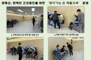 [아시아통신] 양평군은 지역 장애인의 건강 증진과 재활 역량 강화를 위해 23일과 30일 양일간 ‘찾아가는 온 재활교육’을 운영한다고 밝혔다. 이번 교육은 국립교통재활병원 소속 작업치료사와 물리치료사가 강사로 참여해 ‘작업치료사와 함께하는 상체 근력 및 유연성, 인지 기능 테스트’와 ‘물리치료사와 함께하는 근골격계 질환 자가 평가와 관리법’을 주제로 진행된다. 교육은 △악력의 중요성과 악력 평가 △어깨 및 경추 근육 강화를 위한 YTW 운동과 수건, 벽을 활용한 어깨 스트레칭 실습 △인지 기능 향상을 위한 스트룹 검사 △근골격계 질환 자가 평가와 스트레칭 방법 △골반 비대칭 교정 및 상부 교차 증후군 관리 방법 등으로 구성됐다. 참가자들은 이번 교육을 통해 일상생활에서 쉽게 적용할 수 있는 운동법과 인지 훈련 방법을 배우고, 스스로 건강 상태를 점검할 수 있는 기회를 갖게 된다. 배명석 보건소장은 “이번 교육은 상체 근력과 인지 기능 향상에 실질적인 도움이 되는 프로그램으로, 지역 장애인의 자가 건강관리 역량 강화에 크게 기여할 것으로 기대한다”며 “앞으로도 주민들이 체감할 수 있는 다양한 재활 및