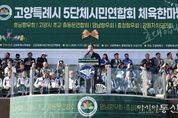 [아시아통신] 이동환 고양특례시장이 1일 고양종합운동장에서 열린 ‘고양특례시 5단체시민연합회 체육한마당’ 개회식에 참석해 축사했다. 이동환 시장은 "이번 대회가 시민 모두가 함께 땀 흘리고 응원하며 서로를 이해하는 진정한 화합의 장이 되길 바란다"라고 전했다. 이날 행사에서 참가자들은 족구, 줄다리기, 낙하산 릴레이 등의 경기를 치르며 선의의 경쟁을 펼쳤다.
