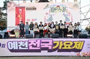 [아시아통신] 제10회 예천전국가요제가 2일 오후 2시,‘2025 예천활축제&농산물축제’ 특설무대에서 열렸다. (사)한국연예예술인총연합회예천지회(지회장 채희삼)의 주관으로 진행되는 이번 대회에는 전국에서 엄선된 본선 12팀이 출연하여 열띤 경연을 펼쳤다. 예천전국가요제는 지역 문화예술 발전과 대중음악 활성화를 위해 꾸준히 이어져 온 행사로 예천색소폰동호회의 식전공연을 시작으로 본선 진출자 12팀과 강민주, 통일메아리악단, 인댄스 무용단 등의 초청공연이 펼쳐졌다. 시상식에서는 400만 원의 상금이 걸린 대상은 문정옥 씨(대구) 금상은 유소라 씨(충주)가 수상했으며, 은상은 장혜진 씨(문경), 동상은 강나은 씨(서울), 가창상은 김정희 씨(영주), 인기상은 최우혁 씨(대구)에게 각각 수여됐다. 수상자들에게는 수상의 영예와 함께 많은 격려가 전해졌다. 김학동 군수는 “지역문화 활성화와 주민 화합의 장을 마련해 가고 전국가요제가 더욱 발전하여 예천을 대표하는 문화예술축제로 자리매김하기를 바란다”고 전했다.