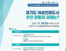 [아시아통신] 경기도여성가족재단이 여성친화도시를 주제로 경기도의회 및 시군과의 협력과 소통을 위한 ‘찾아가는 토론회’를 개최한다. 오는 26일 오후 2시 남양주시 다산2동 행정복지센터에서 열리는 토론회는 재단이 수행 중인 ‘경기도 시군 여성친화도시 추진 실태와 과제’ 연구를 주제로 도내 여성친화도시 현황을 점검하고 발전 방안을 모색하기 위해 마련됐다. 재단은 성평등가족부의 평가지표를 통해 여성친화도시로 지정되지 않은 도내 15개 지역의 여성친화도시 추진계획과 추진 준비 정도를 살펴보고, 이미 여성친화도시로 지정된 16개 시군 담당자를 대상으로 추진 과정에서의 어려움과 정책요구를 조사했다. 이날 토론회에서는 연구책임자인 최하영 연구위원이 연구결과를 발표할 예정이다. 토론자로는 유호준 경기도의원, 박은순 경기남부 한부모가족지원 거점기관장, 서은정 남양주시여성회 공동대표, 이영안 남양주시정연구원 선임연구위원이 참여한다. 좌장은 한상윤 세명대학교 사회복지학과 교수가 맡았다. 김혜순 재단 대표이사는 “이번 토론회는 시군의 여성친화도시 추진 경험을 공유하고 경기도 차원의 여성친화도시에 조성에 대한 정책지원 방