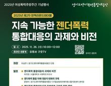 [아시아통신] 경기도와 경기도여성가족재단 젠더폭력통합대응단은 26일 오전 10시 ‘지속가능한 젠더폭력 통합대응의 과제와 비전’을 주제로 2025년 제2차 정책라운드 테이블을 개최한다. 온라인으로 진행되는 이번 정책라운드테이블은 여성폭력추방주간(11.25~12.1)을 맞아 젠더폭력 문제의 심각성을 환기하고 지속가능한 통합대응 체계를 구축하고자 마렸됐다. 성평등가족부 박선옥 권익정책과장을 비롯해 학계·지원기관·현장 실무 전문가들이 발표와 토론에 참여한다. 좌장은 이성은 단장이 맡았다. 특히 이번 행사에서는 ‘젠더폭력 통합대응을 위한 중앙정부의 역할과 협력방안’을 논의함으로써 경기도 현장 경험을 토대로 중앙정부와의 실질적 협력 모델을 모색하는 장이 될 것으로 기대된다. 이성은 대응단장은 “이번 정책라운드 테이블이 경기도 젠더폭력 통합대응 체계를 한 단계 더 발전시키고 경기도형 모델을 전국적으로 확산하는 출발점이 되기를 바란다”며 “실효성 높은 통합대응 기반 마련에 최선을 다하겠다”고 말했다. 이번 행사는 경기도여성가족재단 유튜브 ‘구읏TV’를 통해 실시간 생중계되며, 온라인 참여자들을 대상의