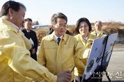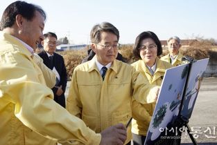 [아시아통신] 28일 안성에서 19번째 민생경제 현장투어에 나선 김동연 경기도지사가 경기도 최남단 안성의 거점소독시설을 찾아 초동 방역 상황을 긴급 점검했다. 이번 점검은 지난 25일 충남 당진에서 발생한 아프리카돼지열병에 대한 선제적 방역 조치의 하나로 마련됐다. 김 지사는 현장에서 터널식 소독조에서 진행되는 가축 방역 과정을 지켜본 후 관계자들을 격려하고 겨울철 동물방역에 최선을 다해줄 것을 당부했다. 김 지사는 “조류인플루엔자와 아프리카돼지열병이 계속 전파 중이어서 걱정이다. 경기도는 빠른 대응, 강력한 방역, 신속한 지원의 3대 원칙으로 동물방역에 대처하겠다”며 “축산농가 보호와 축산업 발전을 위해 최선을 다하겠다. 축산농가 종사자 여러분들도 방역과 예방에 협조를 부탁드린다”고 강조했다. 돼지 33만 두를 사육하는 안성(도내 2위, 전국 4위)은 평택·화성과 근접한 돼지 사육 중심지다. 경기도는 방역대 설정, 이동 제한 등 광범위한 방역 조치를 시행하고 있다. 현장에서 김보라 안성시장, 윤종군 국회의원과 즉석 스탠딩 간담회 가져 소독시설 점검을 마친 김동연 지사는 2