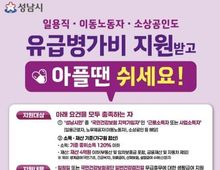 [아시아통신] 성남시는 2026년에 노동취약계층을 대상으로 생활임금(10만160원)에 준하는 유급병가비를 지원한다. 생계를 이유로 질병 치료나 건강검진을 미루기 쉬운 일용근로자, 노무제공자(이동노동자), 소상공인 등 노동취약계층이 무급휴무 부담 없이 건강을 챙길 수 있도록 최소한의 생활급여를 보장해 ‘아플 때 쉬는 건강도시’를 구현하겠다는 취지다. 지원 대상은 성남시에 주민등록이 되어 있고 국민건강보험 지역가입자인 근로소득자 또는 사업소득자로, 가구원 합산 기준 중위소득 120% 이하, 일반재산 4억원 이하 등 소득·재산 기준을 충족해야 한다. 생계급여, 의료급여, 산재보험, 실업급여 등과의 중복 수혜는 불가하다. 입원일 또는 국민건강보험공단 일반건강검진일에 무급휴무를 실시한 경우 연간 최대 13일, 누적 30일 범위에서 유급병가비를 지원받을 수 있다. 지원 금액은 성남시 생활임금 기준 2025년 하루 9만7360원(연 최대 1,265,680원)에서 2026년 하루 10만160원(연 최대 1,302,080원)으로 인상된다. 신청은 퇴원일 또는 검진일로부터 6개월 이내에 성남시청 고용과를 방문하거나