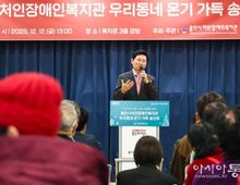 [아시아통신] 용인특례시는 12일 용인시처인장애인복지관이 한해 동안 나눔을 실천한 후원자와 자원봉사자를 위한 ‘우리동네 온기가득 송년회’를 열었다고 밝혔다. 이 행사에 참석한 이상일 용인특례시장은 장애인복지를 위해 헌신한 후원자와 자원봉사자, 복지관 관계자들을 격려하고, 감사의 마음을 나눴다. 이상일 시장은 “처인장애인복지관은 장애인 복지 수준 향상을 위해 훌륭한 활동을 해왔다”며 “이 자리에 계신 후원자와 자원봉사자 여러분의 헌신적인 노력은 장애와 비장애의 벽을 허물고, 장애인에게 희망을 전달했다”고 말했다. 이 시장은 “용인특례시는 장애인 복지 활동과 정책을 선도적으로 운영하고 있고, 장애인을 위한 시설개선에도 적극 노력하고 있다”며 “장애인복지관에 많은 후원이 모이고 있고, 이 마음이 용인특례시를 따뜻한 공동체 사회로 만들고 있다”고 했다. 이날 행사에는 이상일 시장을 비롯해 지역 주요 내빈, 후원자, 자원봉사자, 복지관 이용자 등 200여 명이 참석했다. 행사는 식전 공연을 시작으로 송년회 영상 시청, 송년사 및 축사, 유공자 표창, 응원 메시지 퍼포먼스 순으로 진행됐으며, 올